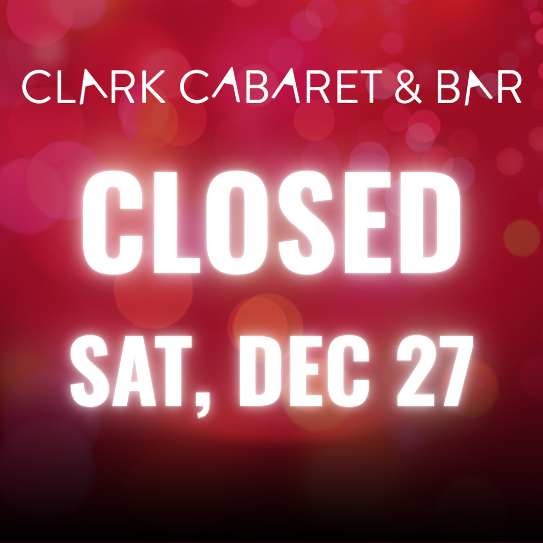 Home Events CLOSED Sat, Dec 27 CLOSED Sat, Dec 27 Due to a last-minute event cancellation, the Clark Cabaret & Bar will be closed on Saturday, December 27th. We will be back open on Sunday, Dec 28th with live music by Janice Edwards! + Add to Google Calendar + iCal / Outlook export Date Dec 27 2025 Expired! Time All Day Share this event