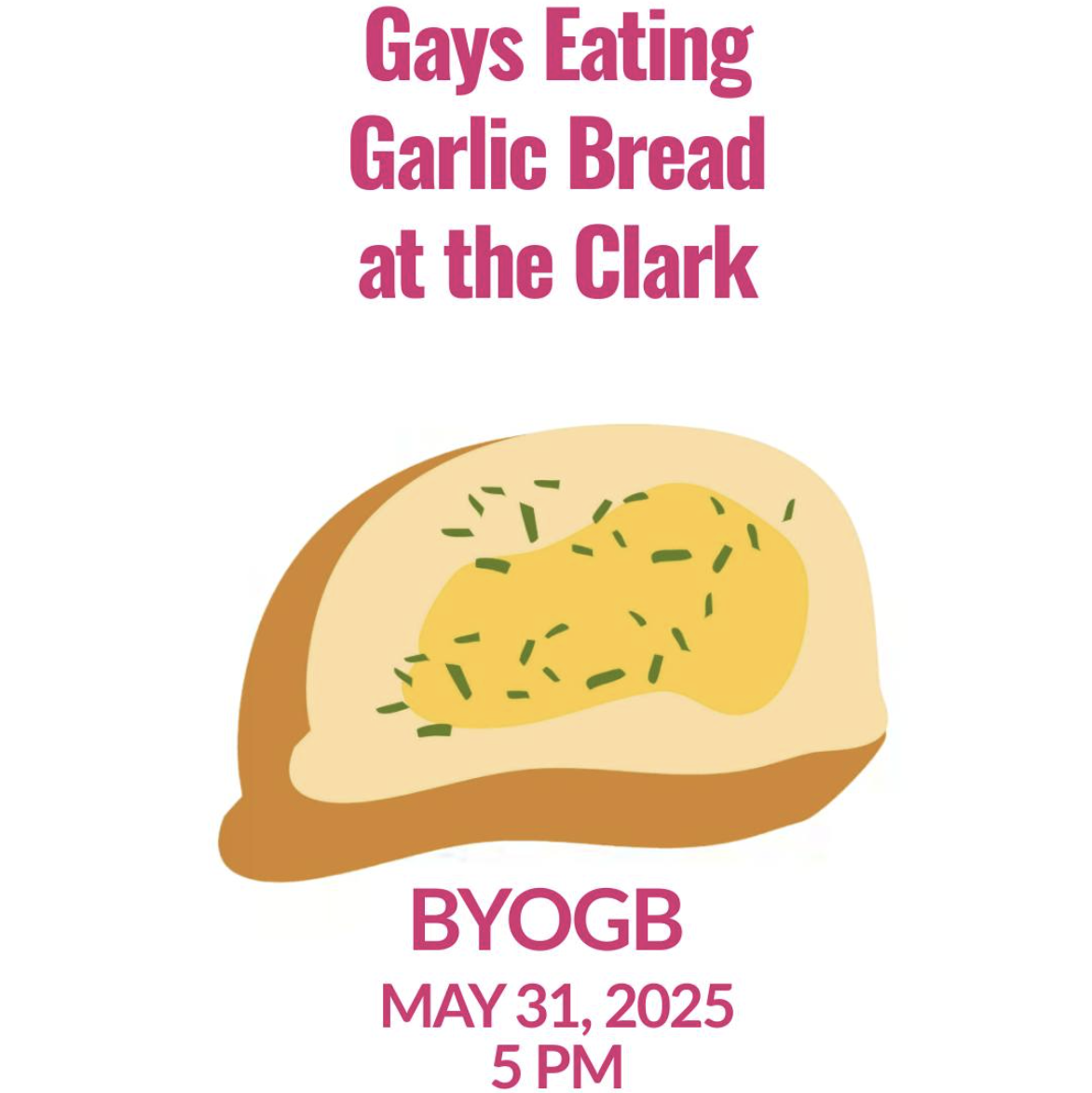 From TikTok virality to real-life event, this trend has made it out of the drafts! It’s silly & fun, and no, we don’t know how it started either, but we’re making it happen! Come on down to the Clark Cabaret & Bar and enjoy some community time over a warm piece of garlic bread! Bring your own, homemade or store-bought will do!