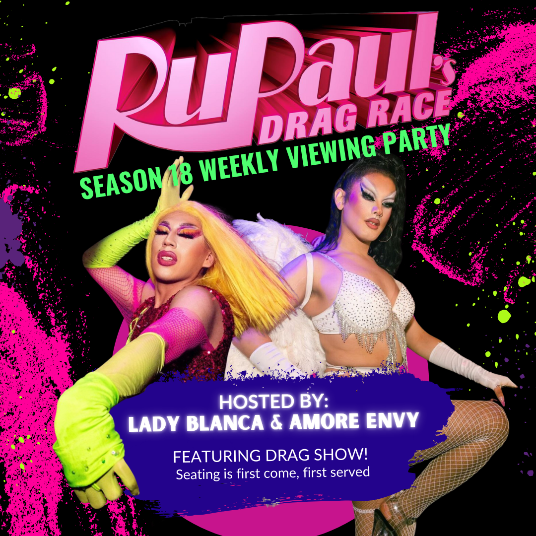 Drag Race is BACK, icons! Join us this Friday at 8PM, for an evening of Drag magic with our best gals, Lady Blanca and Amore Envy! The night begins with a drag show by our girls, and then the sashay down RuPaul’s runway begins! Seating is first come, first served, so come early and ready for some FUN!
